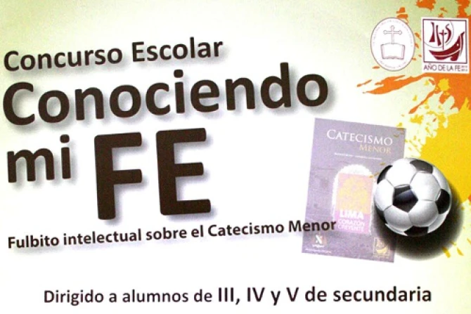 Con ocasión del Año de la Fe, el Arzobispado de Lima (Perú) ha lanzado el concurso escolar "Conociendo mi fe", un denominado "fulbito intelectual" sobre el Catecismo Menor, dirigido a estudiantes de 3º a 5º de secundaria de colegios particulares y estatales de esta capital.