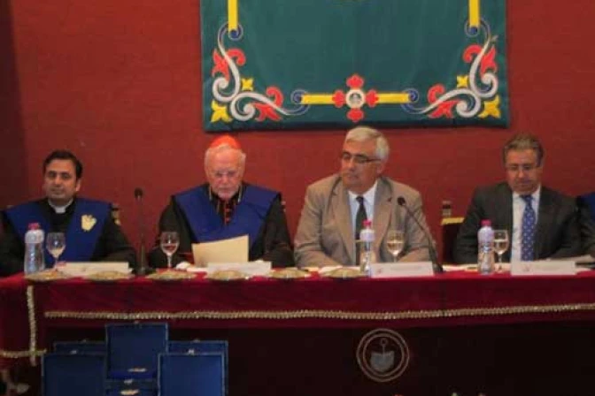 El Cardenal Carlos Amigo Vallejo ha protagonizado este miércoles la lección magistral del acto de imposición de las becas de honor del curso 2012/2013 del colegio Mayor San Juan Bosco, una ceremonia encuadrada en el II año del trienio de preparación del bicentenario del nacimiento de esta institución.