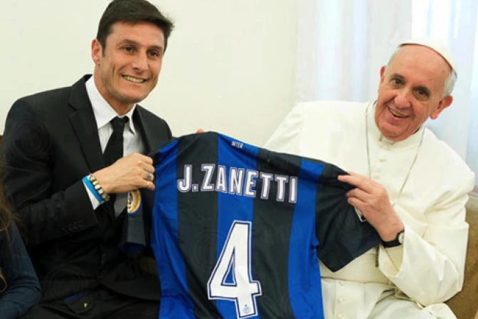 El emblemático jugador católico defensa de la selección argentina y capitán del Inter de Milán (Italia), Javier "Pupi" Zanetti, tuvo una audiencia ayer con el Papa Francisco, en la que le regaló su camiseta del equipo italiano y conversaron sobre los proyectos de ayuda en los que participa el deportista.