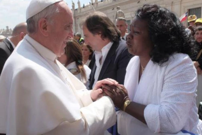 La líder de las Damas de Blanco, Berta Soler, tuvo un breve encuentro con el Papa Francisco al término de la Audiencia General de este miércoles, durante el cual el Santo Padre le dio la bendición para Cuba y le dijo que "sigan adelante".