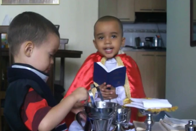 Se llama Samuel Jaramillo, tiene solo 3 años de edad, y en lugar de imitar a algún personaje de ficción, su juego favorito es "celebrar Misa" vestido de sacerdote con los ornamentos litúrgicos que pidió de regalo por Navidad.