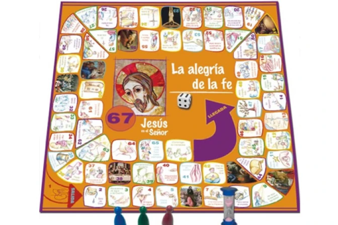 El juego es una iniciativa de la religiosa María Granados Molina y pone a prueba los conocimientos sobre la fe a lo largo de 67 casillas. Según explica la editorial EDICE, que apostó por el producto, ya se han lanzado dos mil ejemplares, y se espera que llegue pronto a América, desde donde han recibido pedidos.