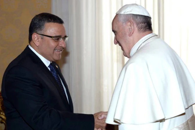 El Papa Francisco recibió en el Palacio Apostólico al presidente de El Salvador, Carlos Mauricio Funes, con quien dialogó sobre las relaciones entre ambos estados y la importancia que tiene para el país el testimonio de vida de Mons. Oscar Romero, asesinado mientras celebraba la Santa Misa el 24 de marzo de 1980 y cuya causa de beatificación se encuentra en la Congregación para la Causa de los Santos.