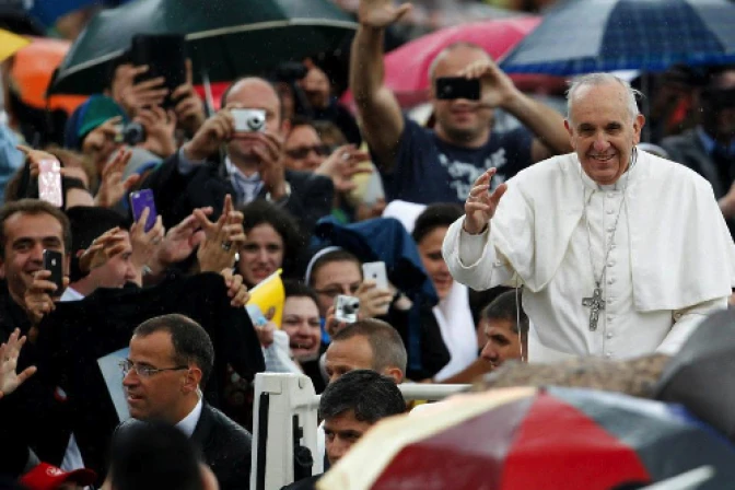 En italiano y con la sonrisa que lo caracteriza, el Santo Padre dijo: "¡felicitaciones por vuestro coraje bajo la lluvia. Son fuertes eh!