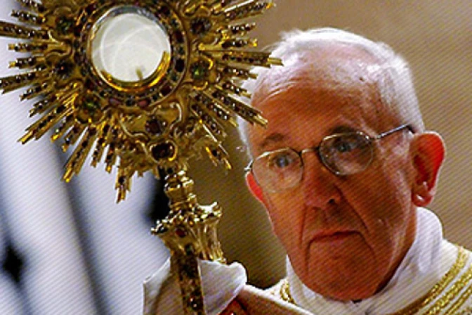 El Papa Francisco presidió este domingo, desde la Basílica de San Pedro, la solemne Adoración Eucarística, a la que, en el marco de las celebraciones por el Año de la Fe, estaban llamadas a participar al mismo tiempo todas las diócesis del mundo, con sus respectivas Catedrales.