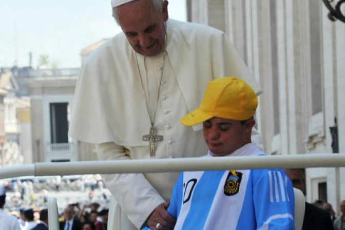 Al finalizar la Audiencia General de hoy miércoles, el Papa Francisco en otro gesto de sencillez y ternura, invitó a Alberto di Tulli, un joven de 17 años con síndrome de Down a subir al papamóvil y sentarse en su sitio por un breve instante.
