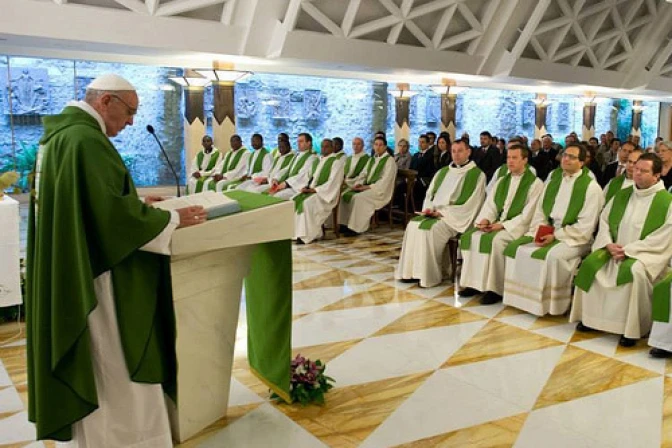"Alguno dirá 'Padre, soy pecador'… Pero todos lo somos. Eso se sabe. El problema es: pecadores, ir adelante con el Señor, ir adelante con aquella promesa que nos ha hecho, con aquella promesa de fecundidad y decir a los demás, contar a los otros que el Señor está con nosotros, que el Señor nos ha elegido y que Él no nos deja solos, ¡jamás! Aquella certeza del cristiano nos hará bien".