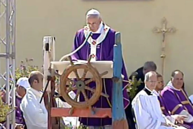 En su homilía el Santo Padre dijo: "inmigrantes muertos en el mar, por esas barcas que, en lugar de haber sido una vía de esperanza, han sido una vía de muerte. Así decía el titular del periódico. Desde que, hace algunas semanas, supe esta noticia, desgraciadamente tantas veces repetida, mi pensamiento ha vuelto sobre ella continuamente, como a una espina en el corazón que causa dolor".