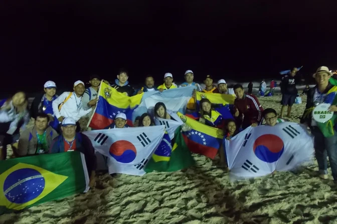 Mucho antes del inicio de la Misa a las 7:30 p.m. (hora local) los cientos de miles de todo el mundo, desde lugares como Corea, Nigeria, Cuba, Mozambique, Noruega, Chile y Argentina, entre muchos otros, llegaron a la playa de Copacabana en Río.