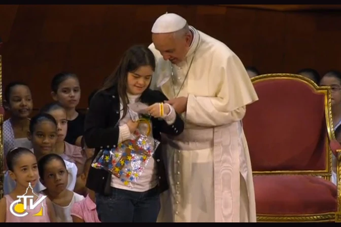El Papa Francisco se reunió en el Teatro Municipal de Rio de Janeiro con dirigentes y representantes del mundo de la cultura en Brasil. Además saludó a un grupo de indígenas de las tribus amazónicas y un grupo de niñas.