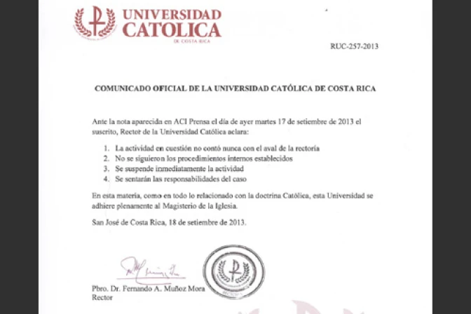 A continuación, ACI Prensa reproduce el texto completo del comunicado oficial de la Universidad Católica de Costa Rica: