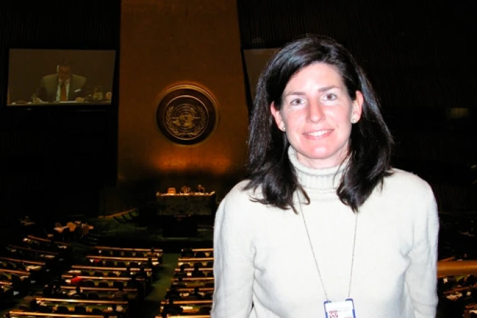 La directora de la Oficina del Instituto de Política Familiar en Nueva York, Lola Velarde, denuncia, en la sede de la ONU, la "falsedad de la recurrente argumentación de los 'lobbies' feministas" sobre la necesidad de legalizar el aborto para lograr una de estas metas, reducir la mortalidad materna.
