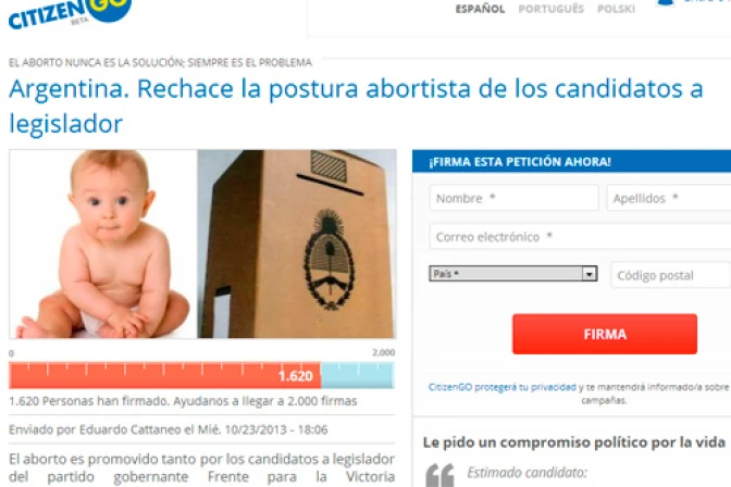 La plataforma ArgentinosAlerta ha organizado una campaña de recolección de firmas a través de CitizenGO, para exigir a los candidatos al Congreso de la Nación que se comprometan con la defensa de la vida y contra el aborto.