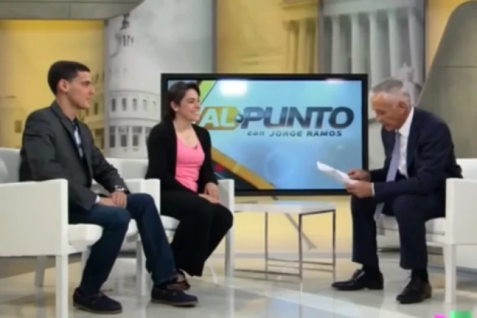 El periodista Jorge Ramos, conocido por sus ataques a la Iglesia Católica, vio cómo dos jóvenes desarmaban sus argumentos cuando intentaba presentar a la mayoría de los católicos como contrarios a diversos temas como el aborto, el "matrimonio" gay y la posibilidad de que existan sacerdotisas.