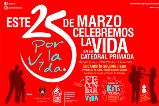 En ocasión del Día del Niño por Nacer, a celebrarse el próximo 25 de marzo, el Departamento de Promoción y Defensa de la Vida de la Conferencia Episcopal de Colombia (CEC) invita a todos los fieles a asistir a la Catedral Primada de Bogotá, y junto al Arzobispo de la Ciudad y Primado de Colombia, Cardenal Rubén Salazar Gómez, festejar el regalo de la Vida.