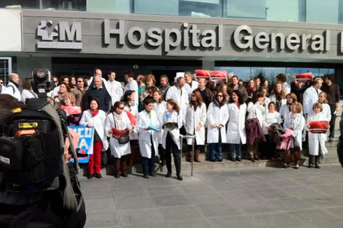 Cerca de 200 médicos y enfermeros de la sanidad pública madrileña se han congregado en las puertas del Hospital General La Paz para insistir en que "el aborto no es un acto médico" y no debería ejercerse en centros sanitarios de titularidad pública.