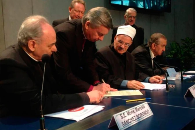 Intervinieron el Obispo argentino Mons. Marcelo Sánchez Sorondo, canciller de la Pontificia Academia de las Ciencias y de la Academia de las Ciencias Sociales, representando al Santo Padre; Mahmoud Azab, representando al Gran Imán de Al-Azhar, Egipto; David John Moxon, representando al arzobispo de Canterbury, Justin Welby; y Andrew Forrest, fundador de la Walk Free Foundation.
