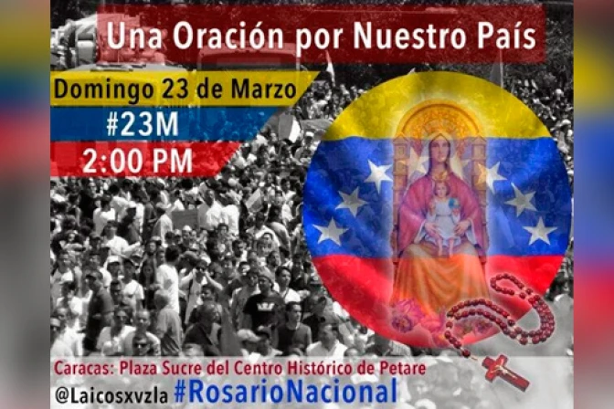 El grupo "Laicos por Venezuela" convocó para este domingo 23 a un Rosario Nacional por la paz en el país, a raíz de la violencia que vive hace años y que se ha recrudecido en las últimas semanas en el marco de las protestas contra el régimen de Nicolás Maduro.
