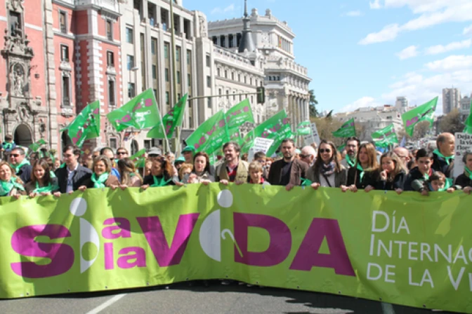 Por cuarto año consecutivo más de 500 asociaciones de España se han unido a la manifestación a favor de la vida que ha tenido lugar este domingo. Bajo el lema 'Sí a la Vida. Por la vida, la mujer y la maternidad' decenas de miles de personas han recorrido el kilómetro y medio que separa la Plaza de Cibeles de la Puerta del Sol con gritos de "sí a la vida", "dejadlos nacer".