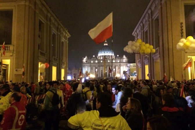 A las 00.00 horas de la noche de ayer, la zona central de Roma era surcada por gruesas hileras de peregrinos que se encaminaban a San Pedro a tomar posiciones. Y a las cuatro de la mañana ya podían verse grupos multitudinarios de polacos (muy numerosos estos días) - y de otros países intentando buscar un acceso a la plaza, cuyos alrededores estaban cortados al tráfico rodado y de personas.