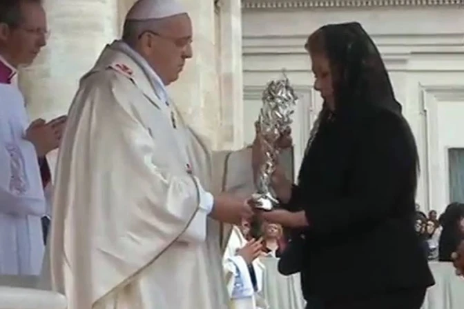 Floribeth Mora, la mujer costarricense por la que se ha atribuido un segundo milagro a San Juan Pablo II, y cuatro sobrinos nietos de San Juan XXIII, han entregado las reliquias de ambos pontífices, sangre de Karol Wojtyla y piel de Angelo Giuseppe Roncalli, durante la ceremonia de canonización al Papa Francisco.