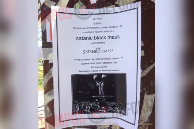 El grupo autodenominado "Templo Satánico" anunció la realización de una "Misa negra satánica" el día 12 de mayo a las 8:30 p.m en las instalaciones del Harvard Extension Cultural Studies Club. Originalmente se indicó que usarían una hostia consagrada, pero luego del revuelo originado por el anuncio, dijeron que "inequívocamente" la Eucaristía no hace parte del controvertido evento.