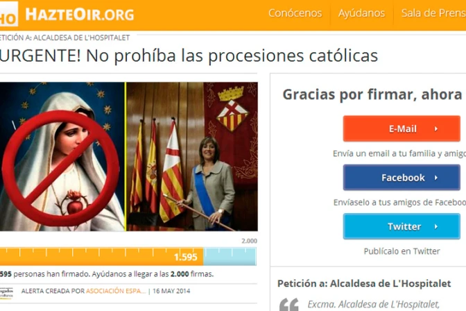 Para firmar el mensaje dirigido a la autoridad municipal de L'Hospitalet, puede ingresar a: http://www.hazteoir.org/alerta/61092-urgente-no-prohiba-procesiones-catolicas?m=5&tcid=2112582