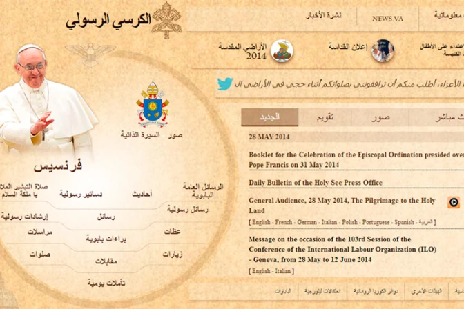 El sitio en árabe funciona desde el pasado 24 de mayo, día en que el Pontífice inició su peregrinación por Tierra Santa.