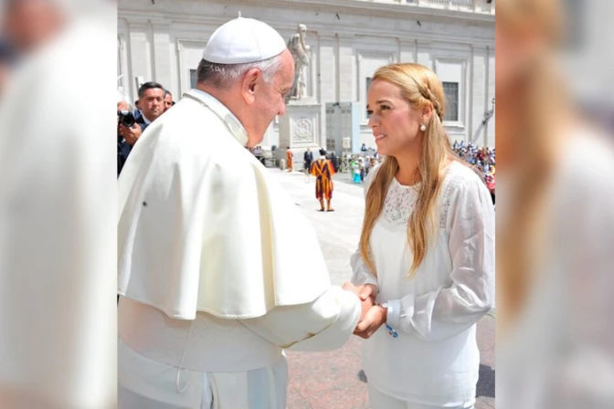 El Papa Francisco envió un mensaje de fortaleza para Leopoldo López y para Venezuela, afirmó Lilian Tintori, esposa del líder opositor venezolano tras haber sido recibida por el Pontífice en el marco de la Audiencia General realizada hoy en la Plaza de San Pedro.