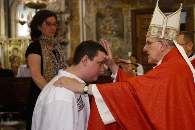 El pasado 29 de mayo el Arzobispo de Valencia (España), Mons. Carlos Osoro, impartió el sacramento de la Confirmación a ocho jóvenes con discapacidad psíquica –con edades de entre 19 y 30 años-, y que son atendidos en la asociación católica Casa de los Obreros San Vicente Ferrer de Valencia.
