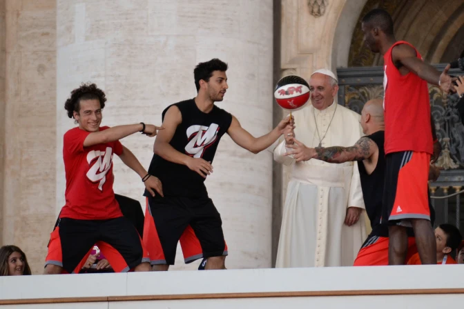 El Santo Padre recalcó después la importancia de que el deporte fuera siempre un juego, porque solo así' 'es bueno para el cuerpo y el espíritu''. ''Y si les gusta el deporte- añadió- los invito no sólo a jugar, cómo ya hacen, sino a algo más: a involucraros en la vida como en el deporte. A entrar en juego también en la búsqueda del bien en la Iglesia y en la sociedad, sin miedo, con valentía y entusiasmo. A entrar en juego con los demás y con Dios; no se conformen con un 'empate mediocre'. Den lo mejor de vosotros mismos.... por lo que realmente es verdad y que dura para siempre. No se conformen... con una vida 'de empate mediocre'. ¡Adelante, en busca de la victoria!''
