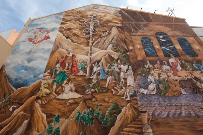 Según informa la revista PARAULA,entre las escenas escogidas para realizar el mural de 350 metros cuadrados y que van acompañadas de sus correspondientes citas bíblicas, figuran la Anunciación, el Nacimiento, la Crucifixión, la Resurrección o el pasaje de la samaritana, entre otras.