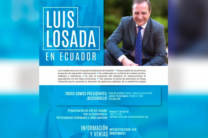 El director de peticiones globales de la plataforma CitizenGO, Luis Losada, presentará en Ecuador la conferencia "Todos somos Presidentes", con la que buscará promover un mayor activismo ciudadano en los temas de defensa de la vida, la familia y la libertad religiosa.