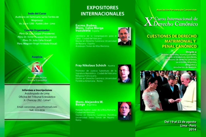 Del 19 al 22 de agosto se llevará a cabo el X Curso Internacional de Actualización en Derecho Canónico en Perú y que tratará cuestiones de derecho matrimonial y penal canónico con especialistas que llegarán desde el Vaticano.