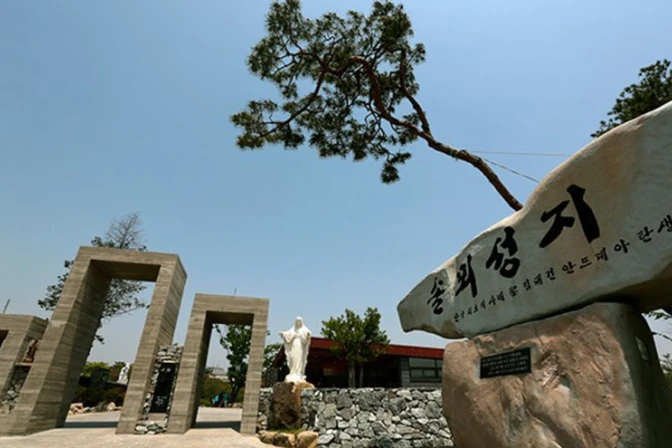 Luego de almorzar con los jóvenes del Seminario Mayor de Daejeon, el Papa Francisco se dirige al encuentro de miles de jóvenes en el Santuario de Solmoe, la tierra donde nació el primer sacerdote católico coreano San Andrés Kim Tae-Gon y que murió mártir, siguiendo el ejemplo de su padre y de su bisabuelo.