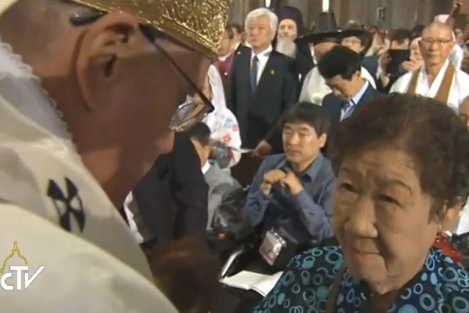 Siete mujeres coreanas mayores de 80 años, que durante la Segunda Guerra Mundial fueron obligadas por el ejército japonés a prostituirse, tuvieron la oportunidad de acercarse e intercambiar unas breves palabras con el Papa Francisco durante la Misa por la paz y reconciliación en la Catedral de Myeong-dong.