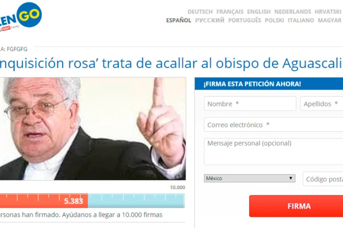 Para expresar su apoyo al Obispo de Aguascalientes, puede ingresar a: http://www.citizengo.org/es/11689-apoyo-y-solidaridad-con-obispo-aguascalientes