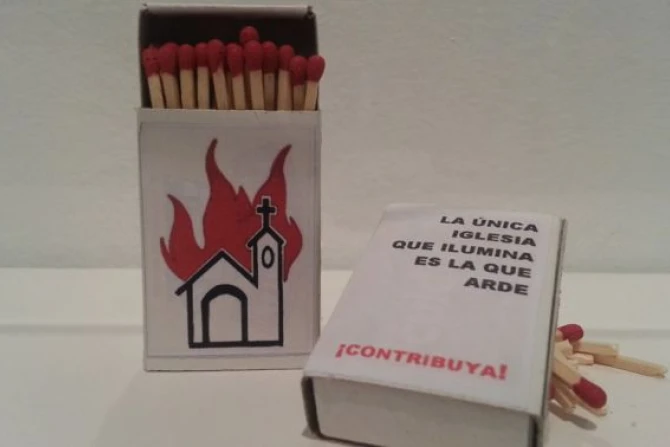 La obra más polémica de esta exposición presenta una caja de cerillas con una iglesia dibujada, y con la inscripción "La única iglesia que ilumina es la que arde". La muestra aún se presenta en el Museo Reina Sofía, desde fines de 2014.