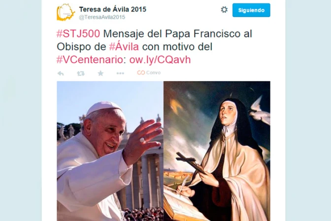 De esta manera, según precisan en el comunicado, "Teresa de Jesús recibirá la felicitación de todos a través de dichas fotografías". El Obispo de Ávila, Mons. Jesús García Burillo, ha sido uno de los primeros en enviar su foto y unirse a la campaña #FelicidadesTeresa.