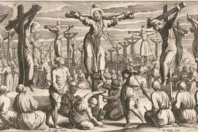La persecución en Japón fue una de las más terribles de la historia. En 1597, 50 años después de la llegada al país de los Jesuitas y antes de la llegada de los franciscanos y los dominicos, el emperador creía que su apostolado era en realidad un proyecto de conquista militar.