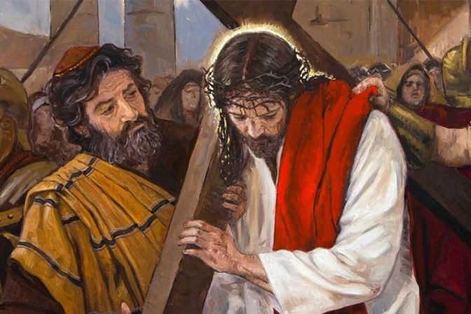 5. Simón de Cirene es obligado a cargar la cruz