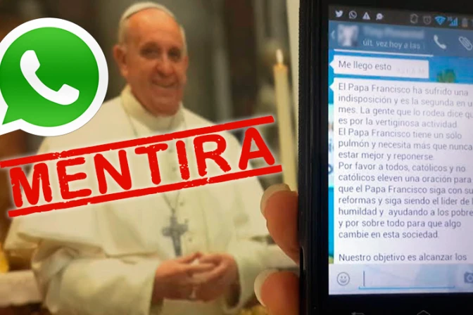 En los últimos días, a través de la aplicación de mensajería WhatsApp, ha circulado un texto que alerta sobre un supuesto problema de salud del Papa Francisco, y pide oraciones urgentes por él.