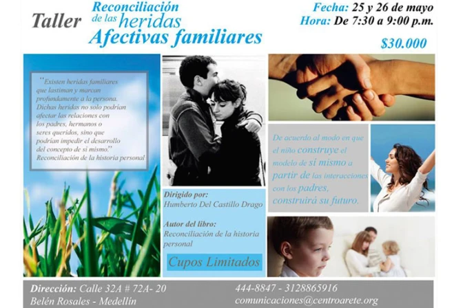 La reconciliación es un don que exige del ser humano una auténtica y profunda apertura y conversión de manera que avanzando en libertad personal fructifique en la vida concreta. Por esta razón el Centro Areté organizará un taller que sobre "La Reconciliación de las heridas afectivas familiares" el próximo 25 y 26 de mayo.