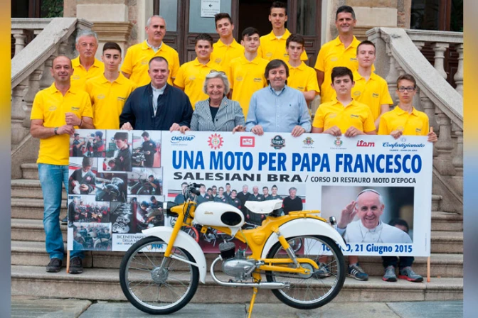 Un grupo de jóvenes de una escuela profesional de mecánica en Italia restauró una motocicleta para regalársela al Papa Francisco.