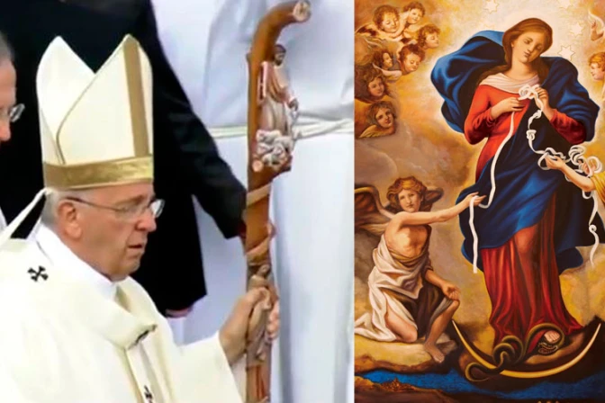 El Papa Francisco tiene una devoción especial a la Virgen Desatanudos, una advocación que conoció en Alemania en los años '80s cuando era sacerdote. Tras un viaje a Alemania llevó consigo varias estampas de Nuestra Señora de Knotenlöserin, que en español significa "la que desata los nudos".