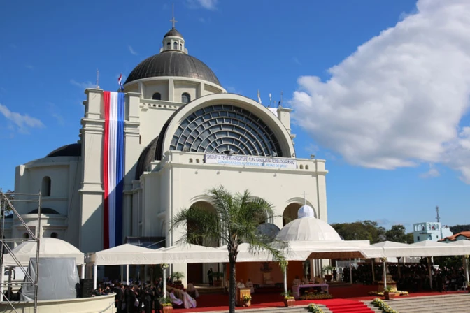 Señora y Madre Nuestra, Virgen de tantos rostros y tantos nombres, que aquí eres infinitamente amada como Tupãsy Caacupé, te consagramos el Paraguay, corazón de América, con todos sus habitantes, ten bajo tu amparo constante a la Iglesia de Cristo aquí presente, a los gobernantes y a todas las familias. Protege también a todos los paraguayos y paraguayas que tuvieron que migrar y aún en la distancia y con tantas pruebas no se olvidan de ti.