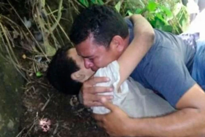 En las redes sociales se difundió una foto en la que Ángel abraza a su padre luego de ser encontrado.