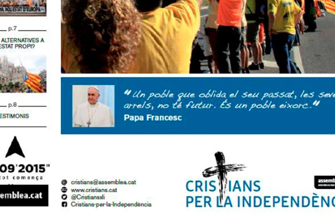 Según el diario La Razón, el grupo secesionista Cristianos por la Independencia ha publicado una revista en la que se anima a votar por la independencia de Cataluña el 27 de septiembre. En la publicación manipulan algunas palabras que el Santo Padre pronunció en su viaje a Paraguay en el encuentro con el presidente de este país, Horacio Cartes: "Un pueblo que olvida su pasado, sus raíces, no tienen futuro. Es un pueblo estéril".