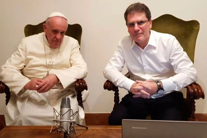 Figueroa: ¡Muy buenas tardes! Este es un programa muy especial de "Diálogos para el encuentro". Estamos aquí, en la Ciudad del Vaticano, en la Residencia de Santa Marta. Quién está al lado mío, mejor dicho, yo estoy al lado de él, es el Santo Padre Francisco, que ha tenido la fineza de dedicar este tiempo para dialogar en este espacio. Así que, lo primero que debo hacer en su casa, es agradecerle este gesto y la hospitalidad.
