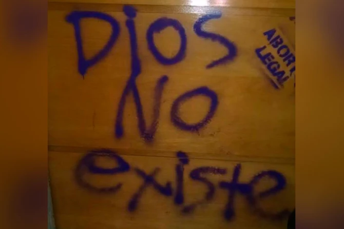 Entre los daños realizados figuran pintas a una imagen de la Virgen María y paredes con lemas como "Dios no existe" y "Aborto legal".